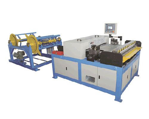 生產Ⅲ線是由上料架、調平壓筋機、沖尖口和沖方口油壓機、液壓剪板機、液壓折邊機所組成。電器控制部分采用全電腦控制,該控制系統具有閉環反饋系統,生產精度和穩定性明顯提高。其大工作速度為10米/分。長度誤差為±0.5mm,對角線誤差 ±0.8mm。 本系統可滿足單班生產1000M2方型風管能力。